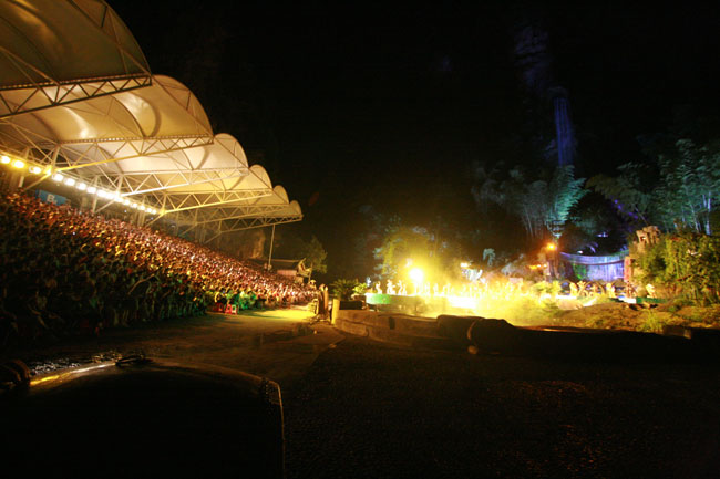 《武陵魂•梯瑪神歌》是一場記述土家族起源、演變、戰(zhàn)爭、生產(chǎn)生活等內(nèi)容的大型立體山水實(shí)景演出,揉合了音樂、舞蹈、文學(xué)等多種藝術(shù)形式,如幻如夢的舞美燈光,搖曳生姿的原生態(tài)歌舞……濃縮了土家族數(shù)千年的發(fā)展歷史,400多名演員以自然淳樸的表演充分的展示了土家的民族文化特征,給游客帶來了耳目一新的感受。一場視聽的饕餮盛宴,一曲驚天地、泣鬼神的曠世古歌,給人山水文化光影視聽的享受!境銎罚簭埣医缣莠斏窀栉幕瘋鞑ビ邢薰尽