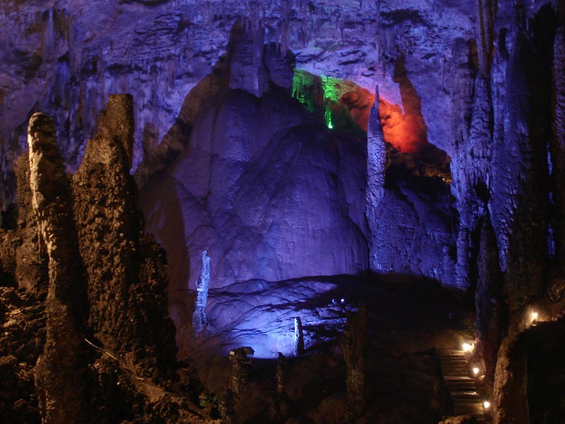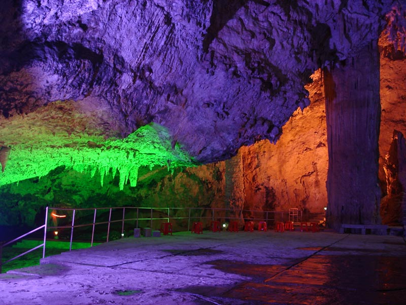 第四絕:九天洞幽 進(jìn)入九天洞如同到了一個(gè)寧?kù)o的世界,在洞內(nèi)讓人有掙脫樊籬,還我自然之感。我們?cè)诙磧?nèi)看到的各式各樣的自然造型,它們是那樣古樸,那樣自然,那樣錯(cuò)落有致,毫無人工雕鑿與粉飾的痕跡。我們?cè)诙磧?nèi)聽到的是潺潺的流水聲與飛燕的撲翅聲,當(dāng)然還有蝙蝠、巨鼠的瞿瞿聲。除此外,洞內(nèi)還有許多南來北往的通幽曲徑:有的去舞廳,有的進(jìn)城門,有的下暗河,有的上天窗。 |