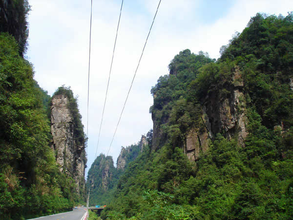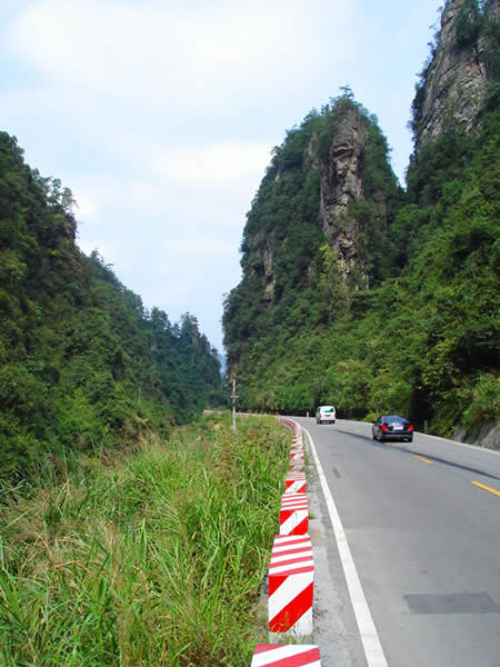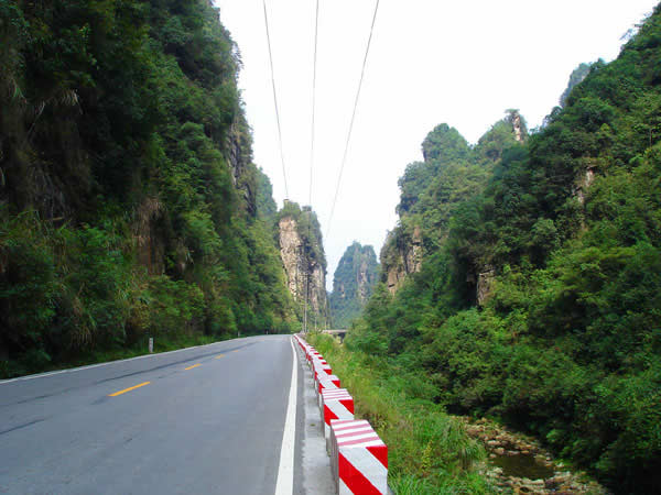 百丈峽圖片 百丈峽是武陵源風(fēng)景名勝區(qū)通往張家界市的公路貫通整個(gè)峽谷,因有堵高近百丈的石壁,直插云霄,不敢仰視,故而得名。據(jù)《慈利縣志》載,索溪峪右得百丈峽,峽長(zhǎng)三十公里……又相傳向王天子起義軍與官兵在此先后博殺一百仗,依此又名百仗峽。明代九永兵備胡桂芳,一生好游歷山川,來(lái)到百丈峽后題寫了一首七言詩(shī):“峽高百丈洞云深,要識(shí)桃源此處尋;戎旅徐行風(fēng)雪緊,誰(shuí)將興盡類山蔭!笨逃趰{內(nèi)道旁石壁上。