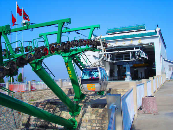 | 湖南武陵源索道有限公司成立于1995年12月7日,武陵源區(qū)人民政府和香港安達(dá)國(guó)際度假樂(lè)園(張家界)有限公司簽約,是由香港安達(dá)國(guó)際有限公司投資的外商獨(dú)資企業(yè)。1996年6月動(dòng)工興建天子山索道,1997年5月正式對(duì)外營(yíng)運(yùn)。天子山索道是單線循環(huán)式脫掛抱索器客運(yùn)索道,全部設(shè)備自?shī)W地利Doppelmayr公司進(jìn)口。設(shè)計(jì)水平線1960m,斜線長(zhǎng)2084m,兩端站高差692m。配單線自動(dòng)循環(huán)車廂41個(gè),每車廂載6人,運(yùn)速5m/s,每小時(shí)單向運(yùn)量900人。索道動(dòng)力電,采用雙電源;配備有應(yīng)急備用柴油機(jī),用于停電或發(fā)生設(shè)備事故時(shí)緊急疏散游客。