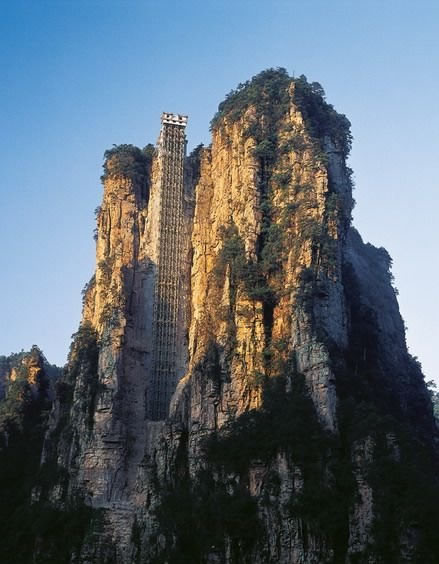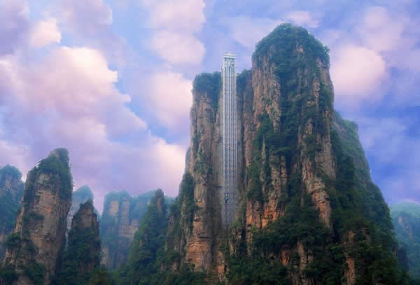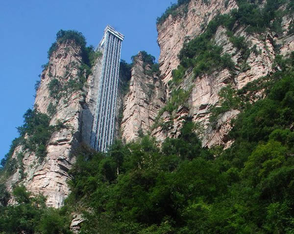 | 百龍?zhí)焯菀挥谑澜缱匀贿z產(chǎn)張家界武陵源風(fēng)景名勝區(qū),1999年9月動工,2002年4月投入營運(yùn),電梯的主要設(shè)備由德國知名電梯公司研究生產(chǎn),耗資人民幣1.8億元,被譽(yù)為“世界上最高、運(yùn)行速度最快、載重量最大的電梯”,也因此被載入吉尼斯世界紀(jì)錄。
