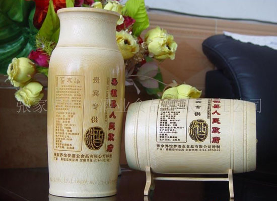 張家界驚夢酒業(yè)食品有限公司是一家專門從事竹筒酒系列和竹工藝品生產(chǎn)的張家界市名星企業(yè),湖南省科技型民營企業(yè)。其系列竹筒酒已通過國際質(zhì)量體系認(rèn)證和中華人民共和國進(jìn)出口資格認(rèn)證。并榮獲湖南省首屆農(nóng)博會金獎。2002年、2003年被評為張家界十大優(yōu)質(zhì)旅游產(chǎn)品。