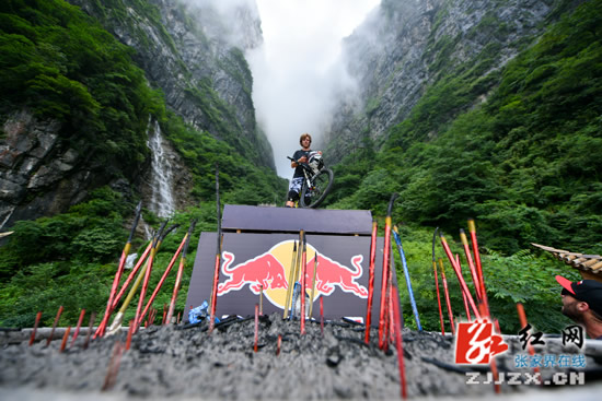 張家界天門山天梯速降賽即將拉開帷幕,7月14日,來自不同國家的14名選手齊聚天門山999級臺階進行適應場地訓練。選手們在空中做出各種翻滾特技動作,引來游人尖叫不斷。