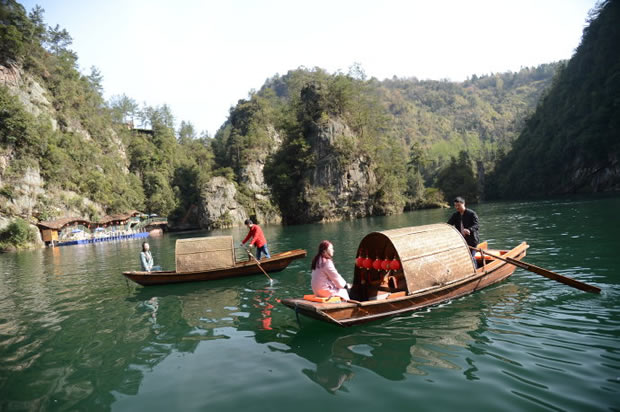 “在高峽平湖中,我們看到了張家界山水的純凈,也感受了這里人文的多彩。”一批來自泰國的華裔游客當天游覽景區(qū)后開心地說。在他們眼中,寶峰湖的春天風景獨好,四周山巒山花競放,五顏六色絢麗無比,就連湖面倒影也十分迷人。而導游員熱情洋溢的講解和山歌船飛出的原生態(tài)民歌,以及烏篷船上身著民族服裝的阿哥阿妹,都是他們張家界之旅不容錯過的人文風景。