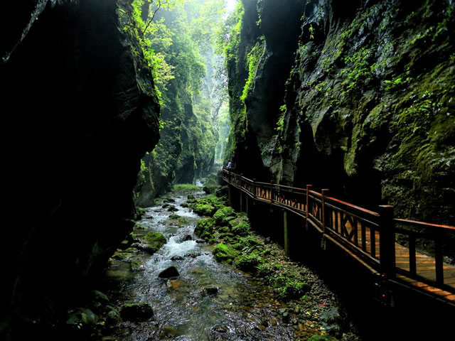 張家界大峽谷位于張家界市慈利縣三官寺鄉(xiāng),緊鄰張家界武陵源風(fēng)景名勝區(qū)。張家界大峽谷原來(lái)有兩個(gè)名字,一個(gè)叫做爛船峽:來(lái)源于神泉溪,整個(gè)大峽谷和南方紅旗渠的水流都來(lái)源于這里,傳說(shuō)以前從泉眼中涌出過(guò)很多爛了的船板,當(dāng)?shù)厝藗冇譄o(wú)法知曉爛船板從何而來(lái),所以這里得名“爛船峽”;另外一個(gè)名字叫做亂泉峽:是指峽谷中的兩面石壁,溪泉眾多,滿峽飛流。大峽谷中的飛瀑神泉比比皆是,一路游覽下來(lái),讓人目不暇接,峽谷里植被繁茂,宛如來(lái)到世外桃源。張家界大峽谷峽谷間是一條清幽的小溪,張家界大峽谷玻璃橋作為世界第一高空玻璃橋即將為世人展現(xiàn)張家界大峽谷的又一個(gè)奇跡。